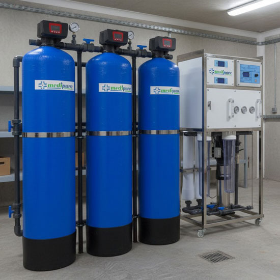 - Sterilizasyon ve yıkama cihazlarının verimli sterilizasyon yapması, cihazların uzun ömürlü çalışması ve tesisatın tıkanmaması için besleme suyu değerlerini Medipure Sterilizasyon Su Arıtma Sistemi; ters ozmoz, ön arıtma ve son arıtma ile entegreli çalışarak uygun hale getirilmektedir. Medipure Ultra Serisi Sterilizasyon Su Arıtma Sistemi; Sterilizasyon Cihazları, Otoklav ve Dezenfeksiyon Cihazlarının ihtiyacı olan yüksek saflıkta, antibakteriyel ve deiyonize su üretmektedir. Klinik, Sağlık kabini, Mobil Sağlık Merkezi, Tıp Merkezi ve Araştırma Hastaneleri, Hastane laboratuvarları, ve Şehir Hastanelerine yönelik özel üretim ve mükemmel cihazlar sunmaktadır.