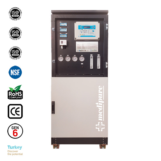 - Medipure XH-8720 serisi Medikal Saf Su Cihazları; Mikro filtreleme, Karbon Filtreleme, Ozmotik demineralizasyon , dublex deiyonizasyon, endotoksin filtreleme, otomatik sanitizasyon, High Boost ,Direct Flow, Auto Flushing, Yüksek UV ışın gücü, Çift katmanlı saflaştırma gibi opsiyonel özellikleri tek cihazda barındıran (ALL IN ONE) antibakteriyel saf su cihazlarıdır. Her türlü ortam şartında ve koşulda besleme suyu değeri üzerinden %99,95 performans sağladığı, klinik uygulamalar ve akreditasyon merkezlerince onaylanmıştır.